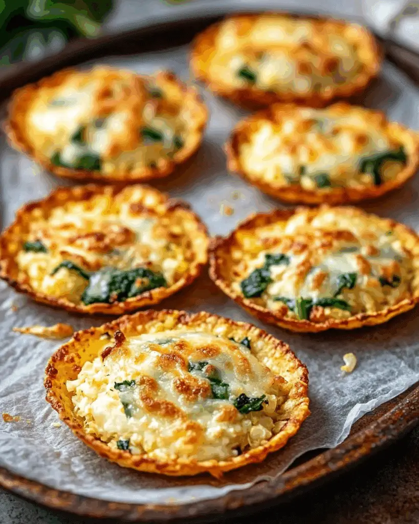 Use a fresh, firm head of cauliflower for the best texture. Don’t skip the step of squeezing out the water — it makes a huge difference in the final crispness of your shells. Be sure to chop the spinach finely so it incorporates evenly. If you want even crispier shells, you can flip them halfway through baking. Lastly, let them cool for a minute or two before removing so they firm up and hold their shape.