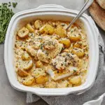 This Creamy Baked Cod with Potatoes and Lemon-Caper Sauce is an elegant yet easy seafood dish featuring flaky cod fillets baked with golden Yukon gold potatoes, then smothered in a luscious lemony cream sauce with capers, rosemary, and Dijon mustard. Perfect for a weeknight dinner or entertaining guests, it’s rich, flavorful, and ready in under an hour.