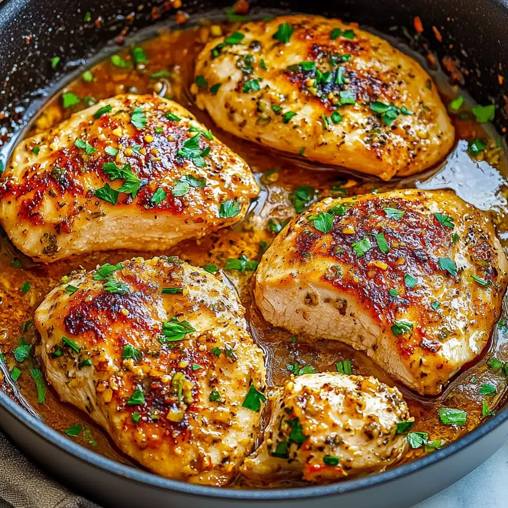 Return the cooked chicken breasts to the skillet, spooning the sauce over the top. Let the chicken simmer in the sauce for a few minutes to absorb the flavors. Garnish with fresh parsley and serve immediately.