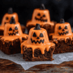 Because the base is a homemade brownie rather than a boxed mix, the flavor is rich and satisfying. Moreover, the bright orange candy melts and dark chocolate faces give each treat a vibrant, spooky charm. They’re also ideal for classroom parties, potlucks, or a Halloween dessert board.
