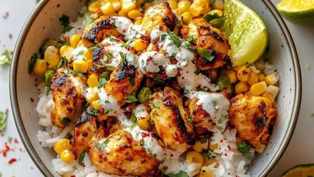 PrintIrresistible Street Corn Chicken Rice Bowl – A Flavor-Packed Meal!