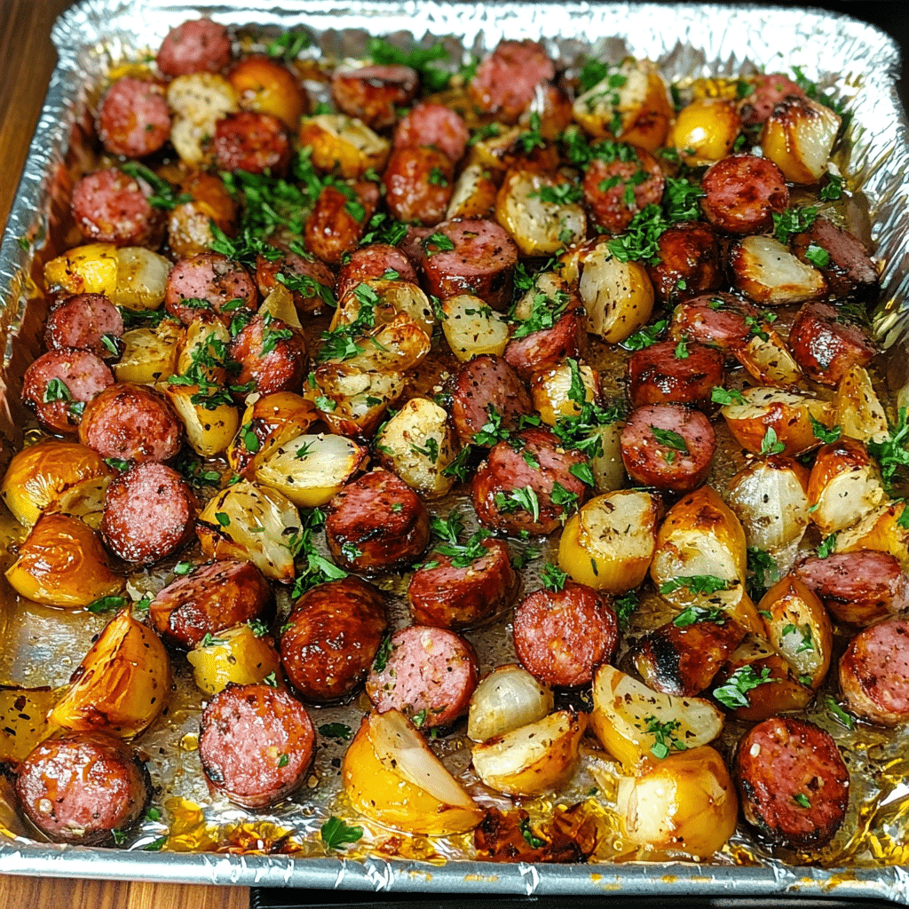 This sheet pan honey garlic kielbasa combines savory kielbasa sausage, tender potatoes, and a sweet honey garlic sauce for an easy, one-pan dinner that’s packed with flavor. Perfect for busy weeknights or casual gatherings.
