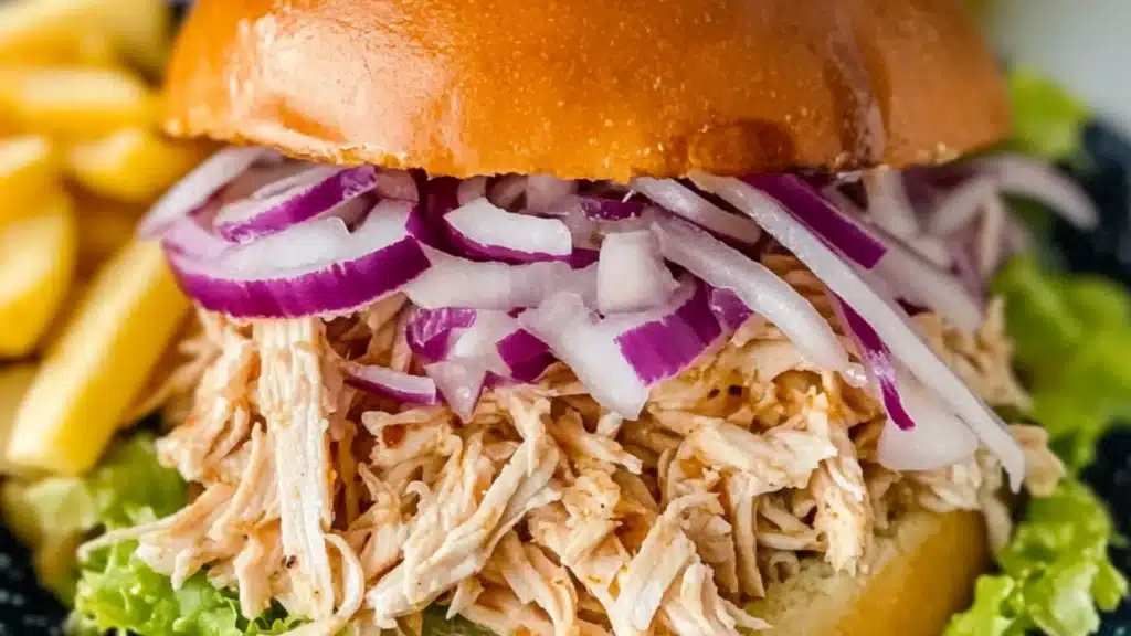 Secondly, this dish is wonderfully versatile. Not only can it be served as a sandwich, but you can also use the shredded chicken in wraps, salads, rice bowls, or stuffed into baked potatoes. It’s great for meal prepping since it stores and reheats beautifully, and it’s just as tasty the next day—if not better.