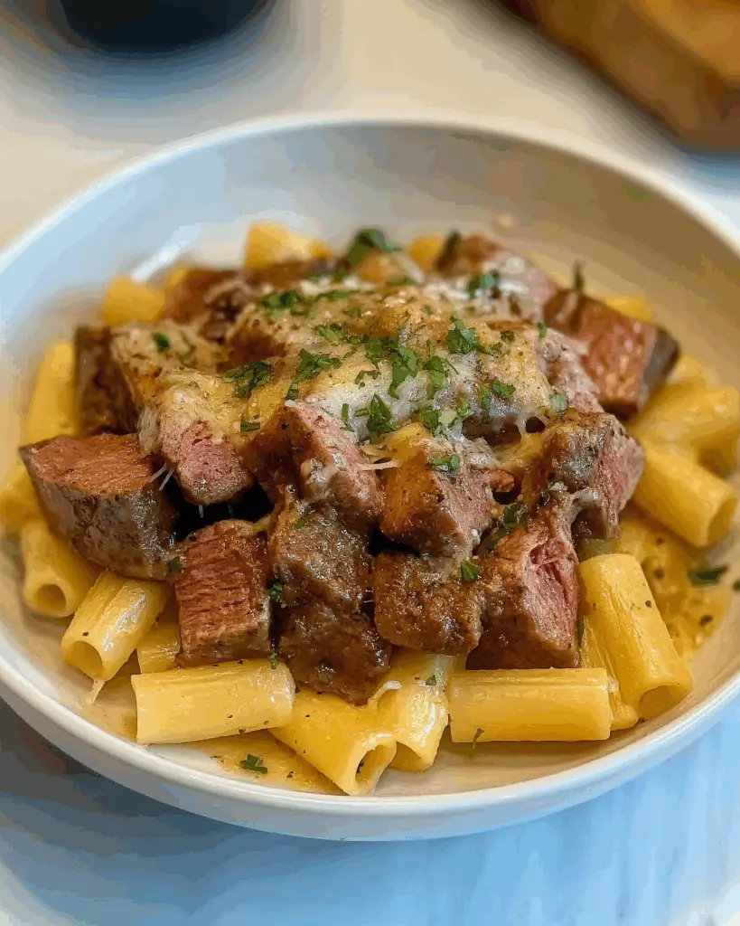 Combined with perfectly cooked rigatoni pasta, the sauce clings to every bite, delivering bursts of cheesy flavor. It’s important to note that this recipe is more than just a pasta dish—it’s an experience. The Cajun seasoning gives it a gentle heat, the cheeses provide creamy indulgence, and the steak adds a luxurious protein that rounds it all out. Even picky eaters and spice-shy diners will find joy in its flavor complexity and cozy familiarity.